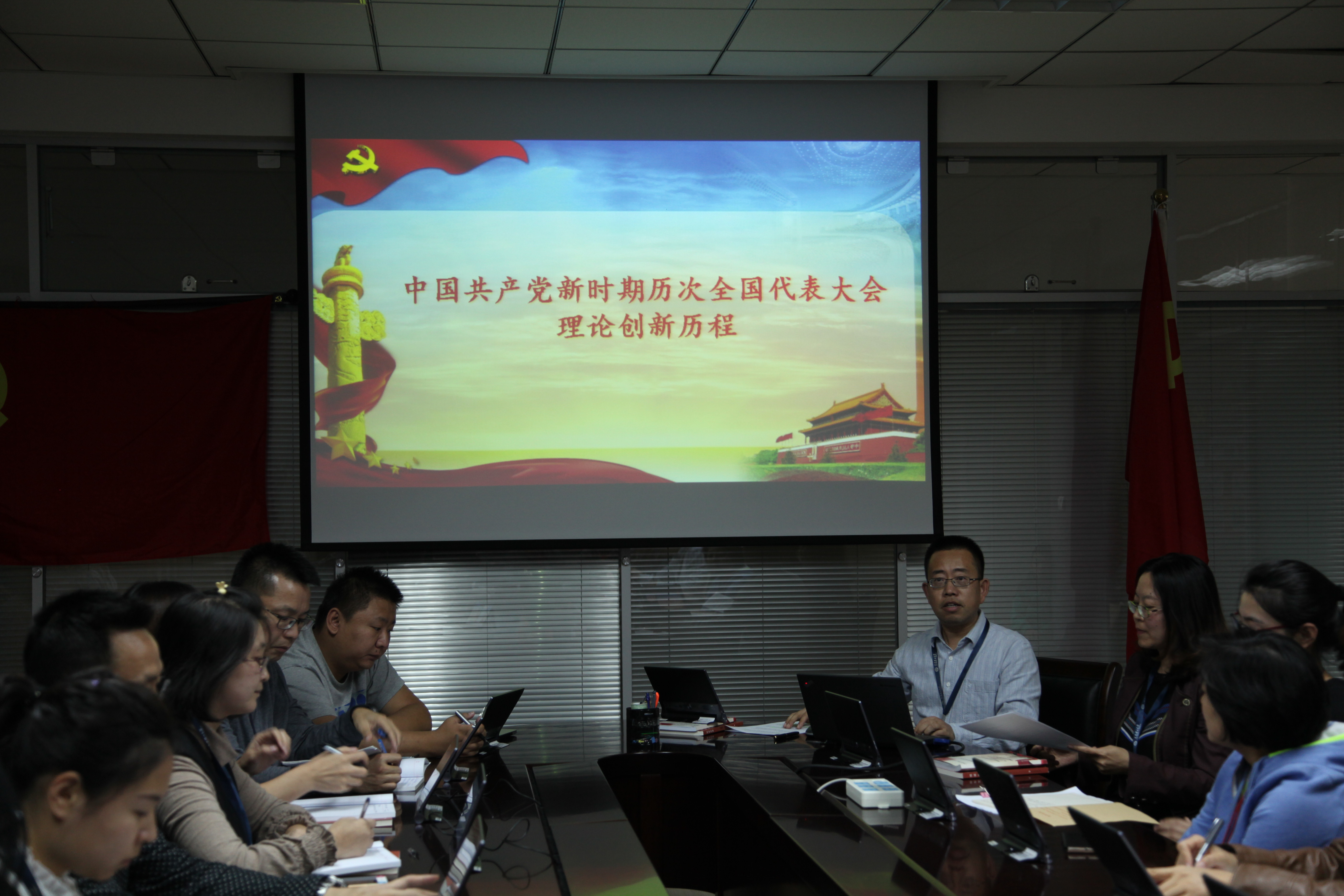 网信中心党支部宋超老师结合十九大召开介绍我们党新时期历次全国代表大会的理论贡献、理论创新历程。通过宋老师的使全体党员了解到根据时代的变迁环境的变化,我们党不断与时俱进进行理论的创新与实践的过程,对于进一步深入学习贯彻十九大精神奠定了良好的基础。