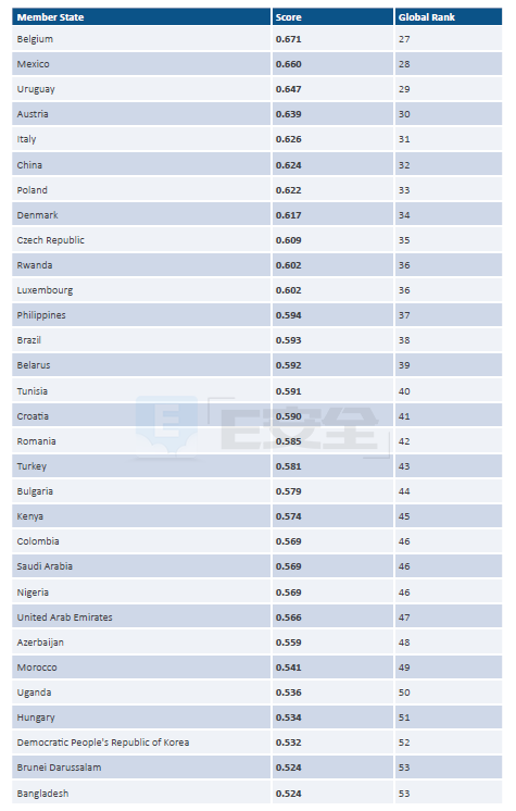 据《2017年全球网络安全指数》显示,193个国家中,中国排名第32。